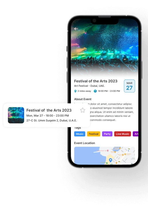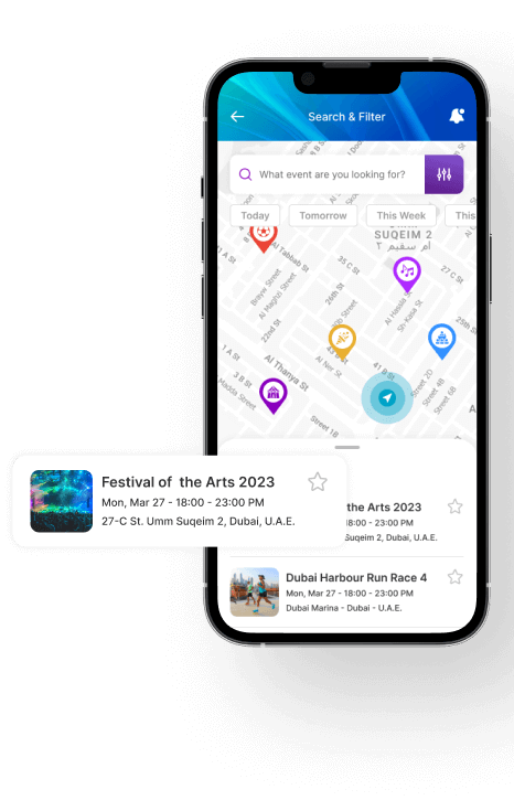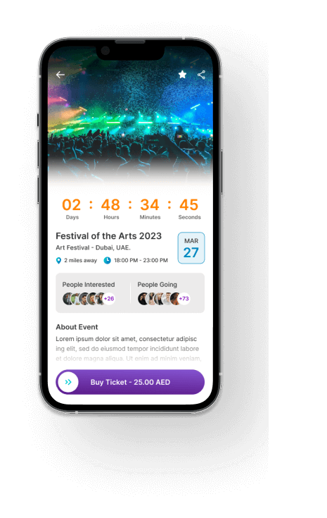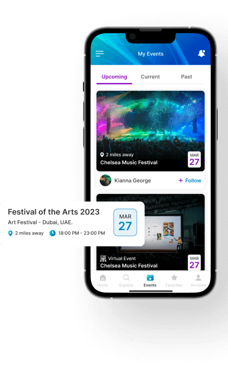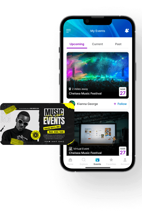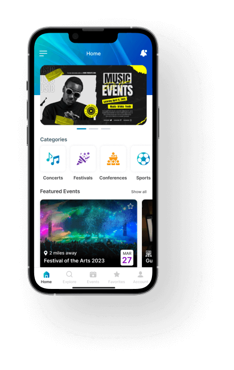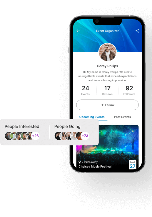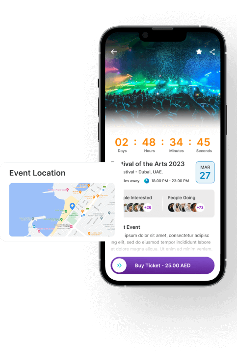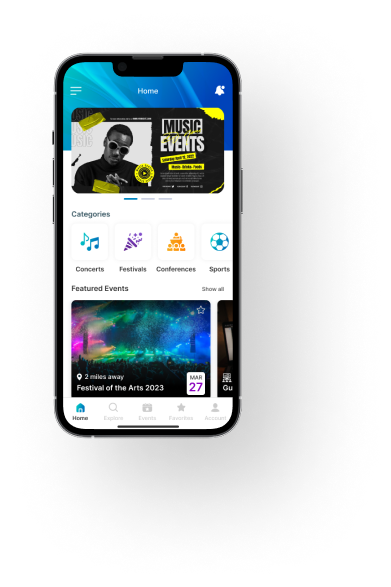 Help audiences discover local events on the go, find out where their friends are headed, and buy tickets, with a market-ready event management platform. Increase attendance; enhance experiences; and maximize ROI for event organizers, with our feature-rich event management and booking app, employing advanced searches, custom locations, & personalized recommendations, for event-goers around the world.