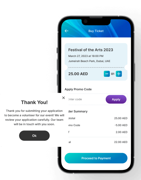 Monitor your event’s earnings in real time. Our app provides detailed breakdowns of ticket sales, refunds, and overall revenue, as well as commission payable to the admin, giving you financial transparency at your fingertips.