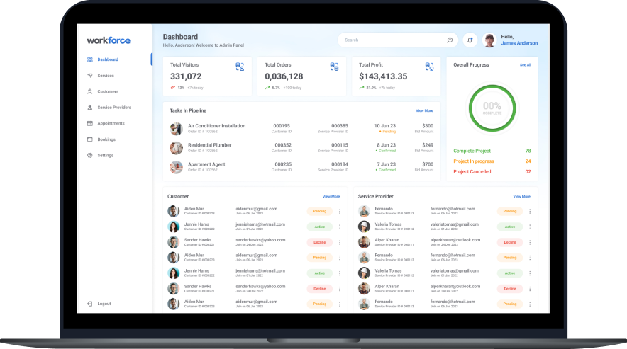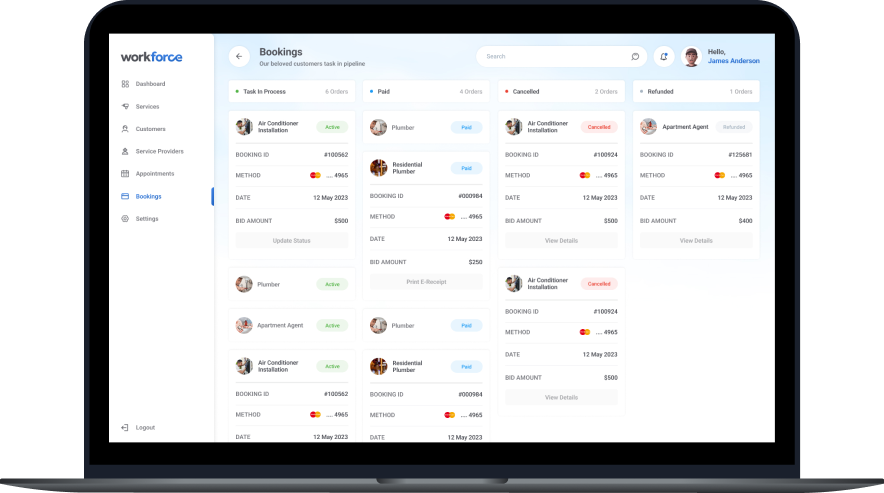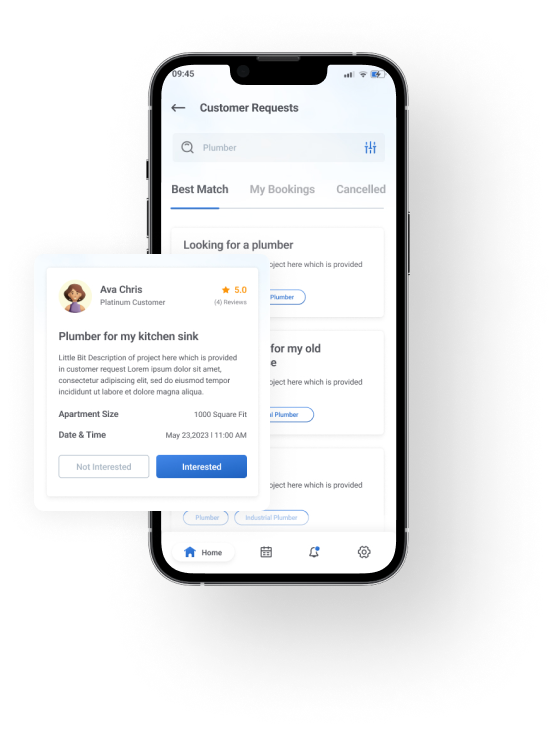 Empower your customers to browse and book services based on preferred time slots and requirements. Users can send quote requests to as many service providers with just one click and send pictures with quote requests if required for better understanding. Instant confirmation and reminders ensure efficient scheduling and timely service delivery. The customers can easily cancel the reservation for services.