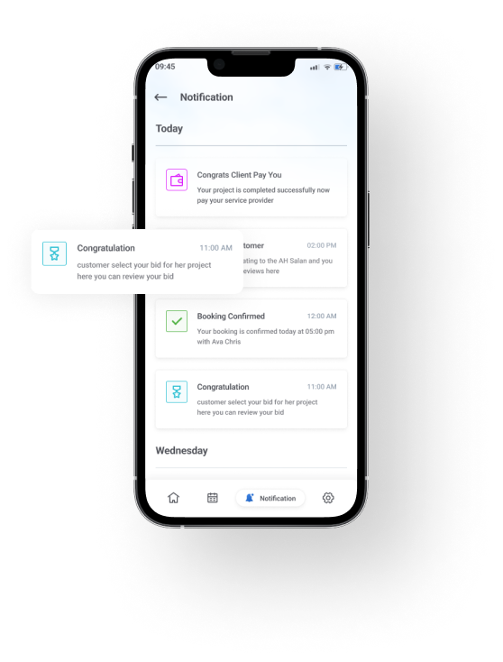 Allow service providers to sign up as a business pro or as an Individual pro, and sign-up for multiple categories. Create a professional profile with relevant contact details, skills and services they provide, availability, and set their own rates for every service they sign-up for. Service providers can even create their own service radius to avoid unwanted requests.